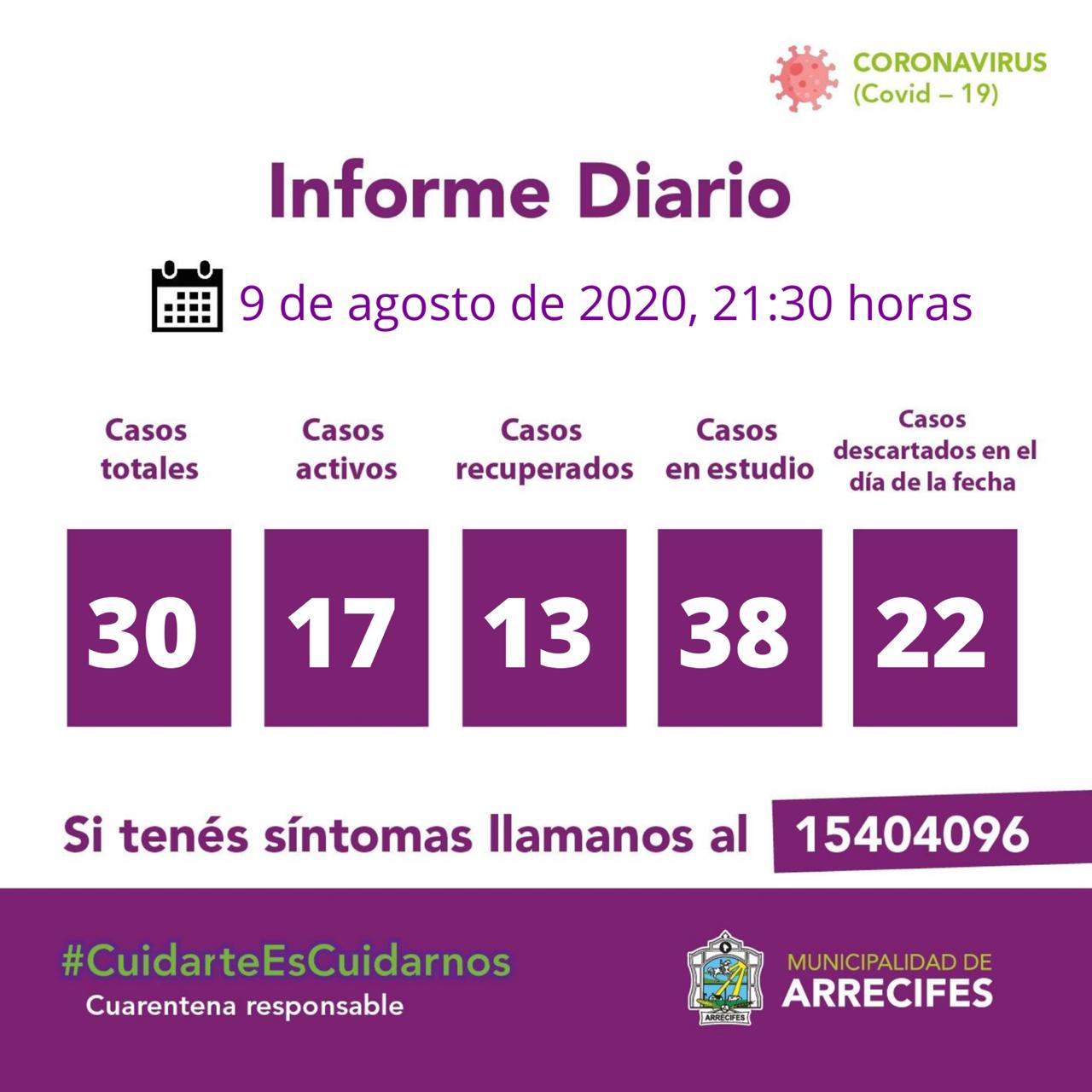 La situación epidemiológica del día 9 de agosto a las 21:30 horas es la siguiente: